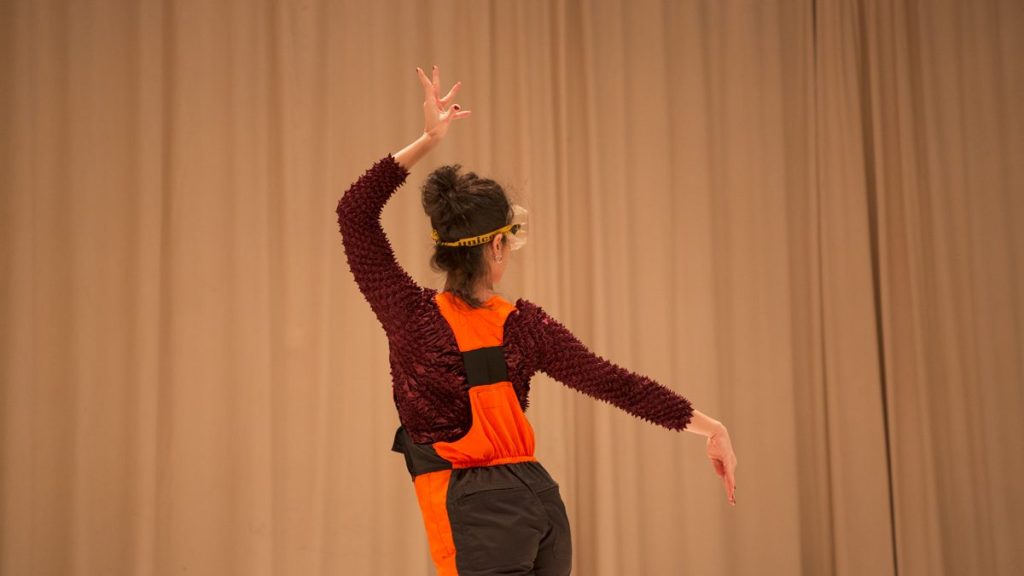 Choreographies of Discard is an extractive enquiry, juxtaposing the labor of dance and the work of machines, both physical and computational, into a critical narrative. The performance includes Lydia Touliatou (dancer), Esther Calderon Morales (sound composition and performer) and Samir Bhowmik (narrator). Background Machine Learning (ML) and data analysis is done by Minh Anh Nguyen on Mudras, that are gestural movements in Bharatanatyam.
